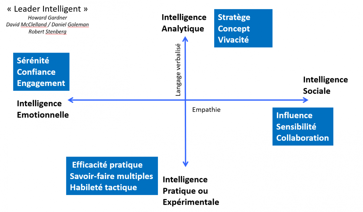 Aujourd’hui la plupart des gens jouent sur l’axe vertical. Or un leader doit savoir utiliser ces quatre intelligences simultanément.